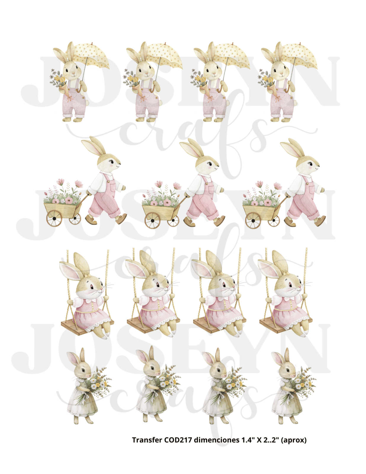 Calcomanía hidrotransferible – Conejitos Rosados-Código217